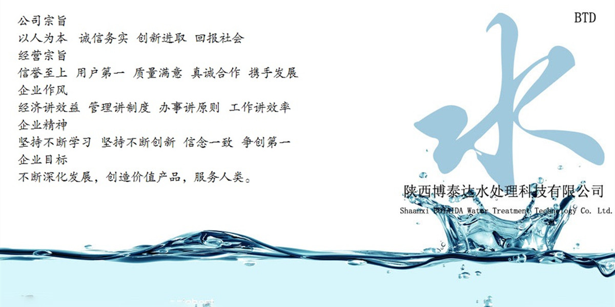 陜西博泰達水處理科技有限公司是西北一家集銷售、科研開發(fā)、安裝和技術(shù)服務(wù)為一體的高新環(huán)保科技型企業(yè)。公司以科技創(chuàng)新為先導(dǎo),全心致力于人類環(huán)境保護和發(fā)展。以客戶滿意、打造完善服務(wù)為遵旨,為廣大用戶提供優(yōu)質(zhì)的水處理設(shè)備和空氣凈化系統(tǒng)。